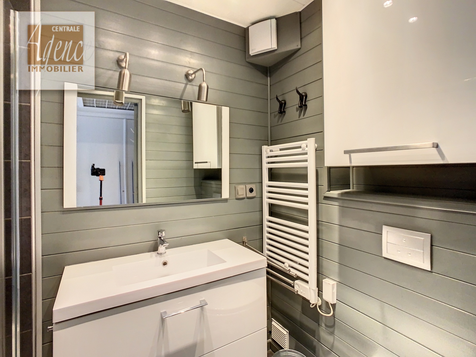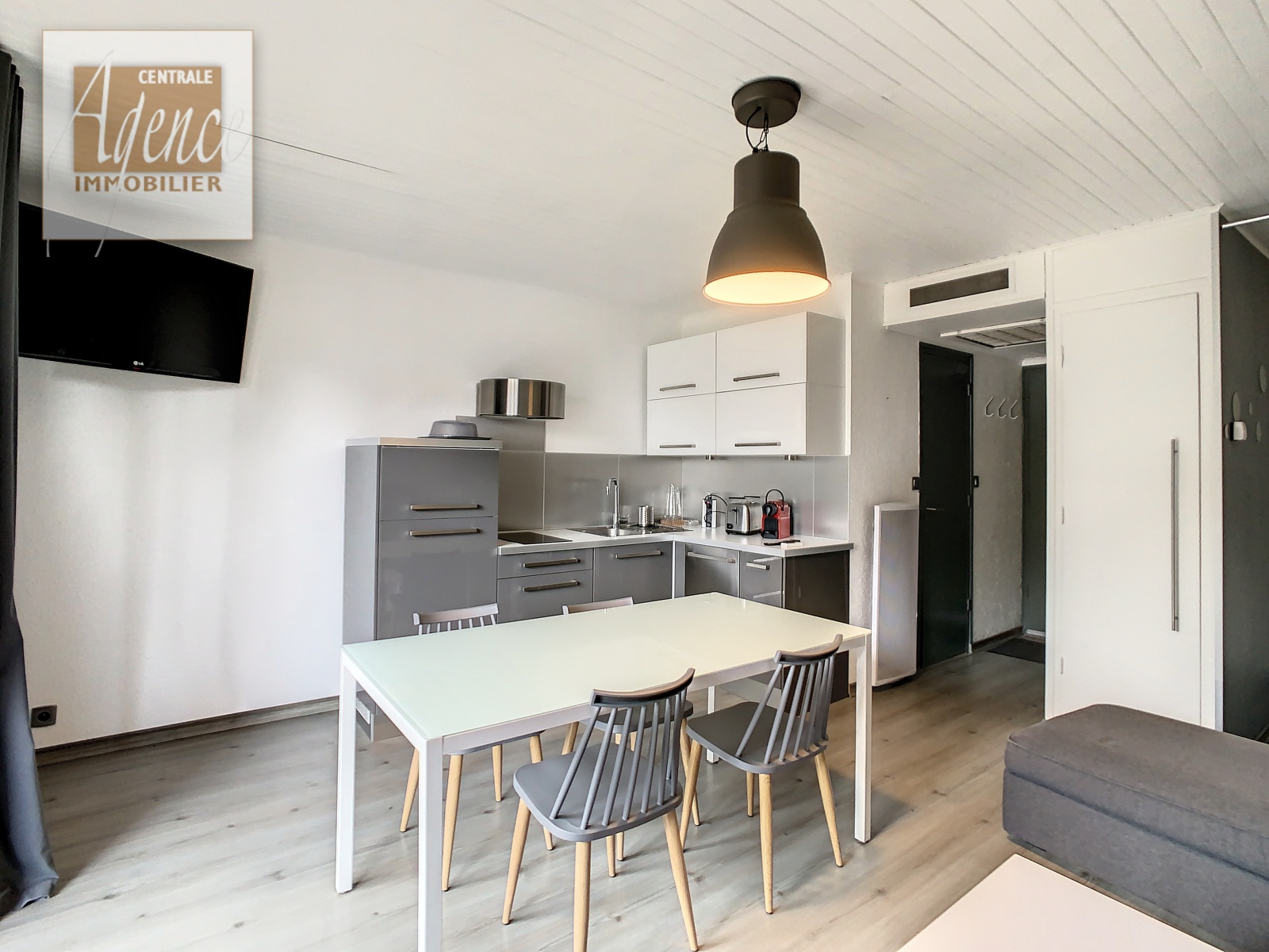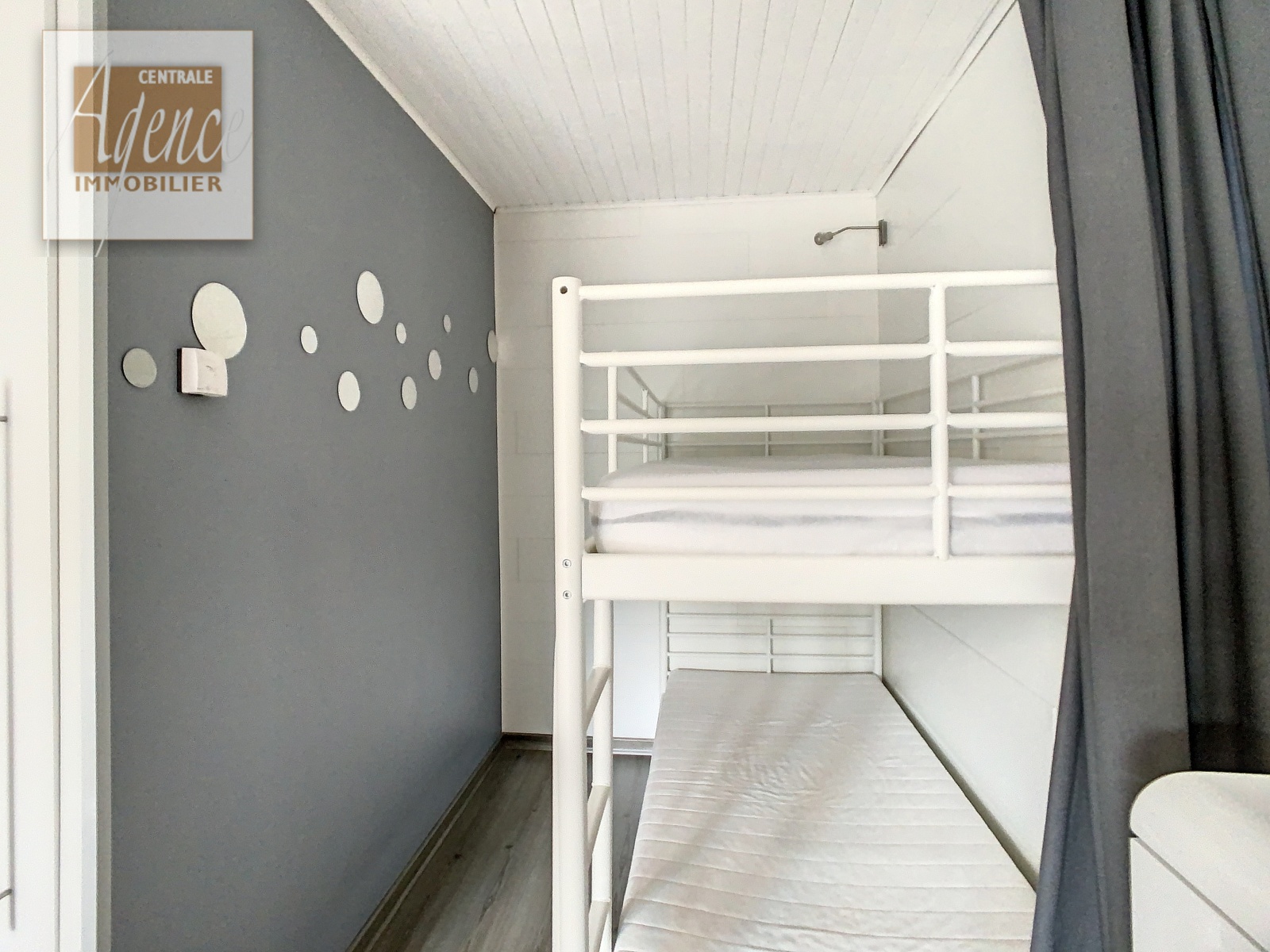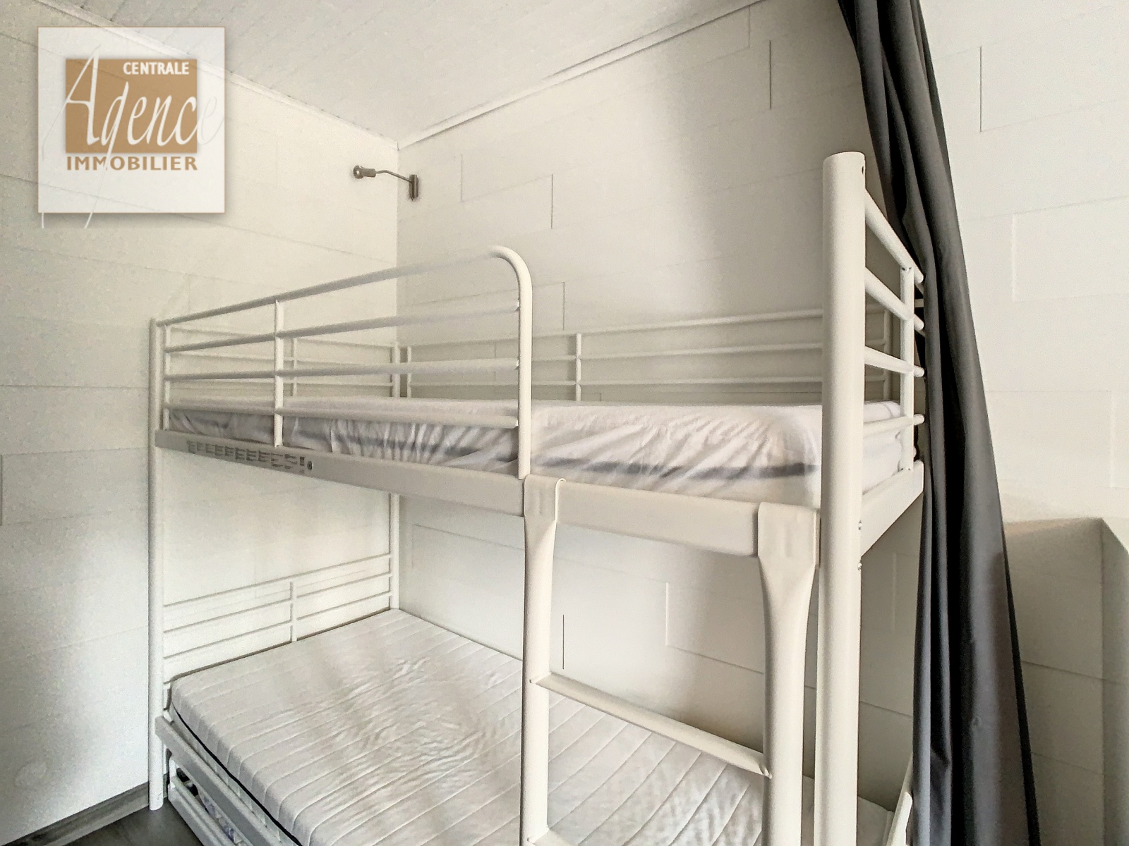 Studio situé au 1er étage de la résidence, composé d'une salle d'eau avec WC, une grande pièce à vivre avec cuisine ouverte entièrement équipée, une alcôve avec lits superposés, accès balcon exposition sud.
